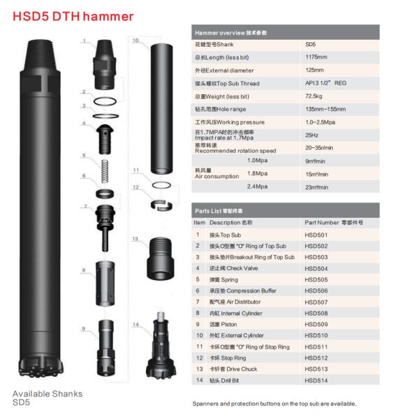 5" SD5 Special Steel Material Down The Hole Hammer Red Color For Mining Images |